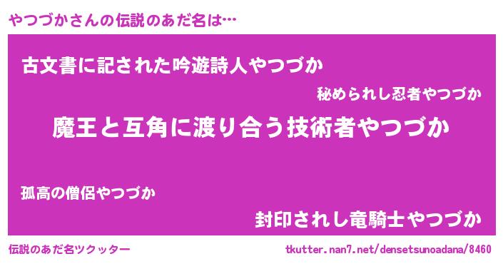 | 女子向けラノベタイトル風あだ名 | 『やつづか恋絵巻』 |
