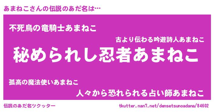 | ヒーロー風カッコイイあだ名 | 『ウルトラあまねこマン』『仮面アマダー』 |