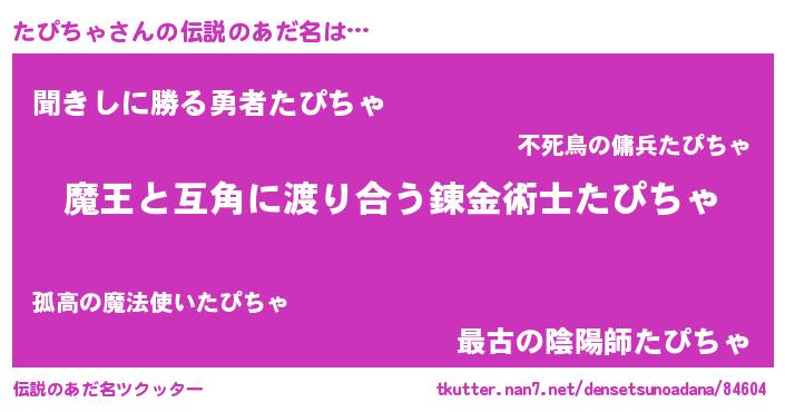 | 意味不明あだ名 | 『住所不定無職たぴちゃ(85歳)』 |