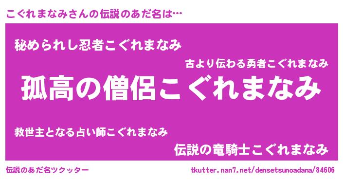 | ヒーロー風カッコイイあだ名 | 『黄金騎士コグ』『スーパーコグレマナミ』 |