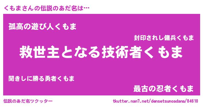 | ヒーロー風カッコイイあだ名 | 『天空の使者くもま』『暗黒騎士クモ』 |