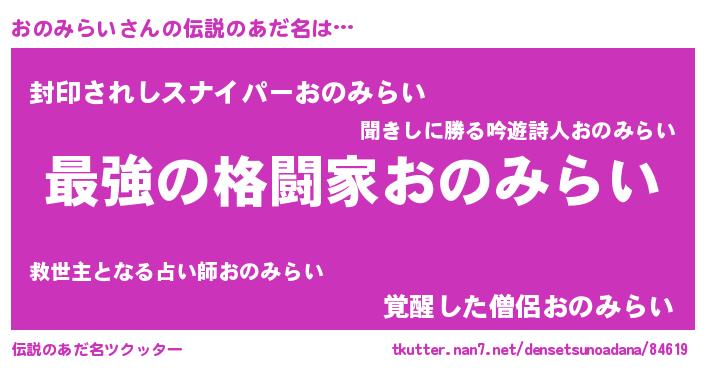 | ヒーロー風カッコイイあだ名 | 『ウルトラおのみらいマン』 |