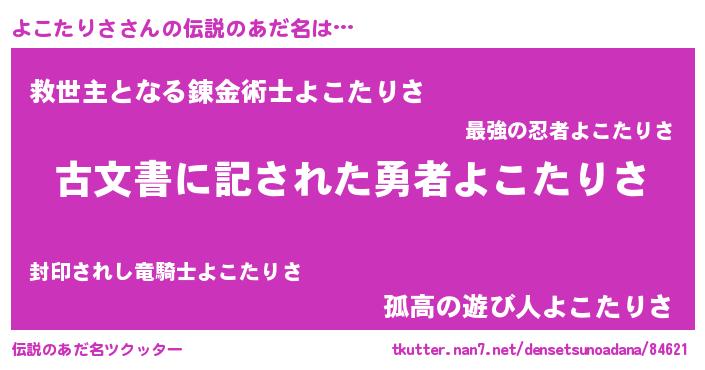 | 意味不明あだ名 | 『永久保存よこたりさ』『自称よこたりさ』 |