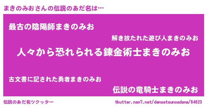 | ヒーロー風カッコイイあだ名 | 『正義の使者まきのみお』『仮面マキダー』 |