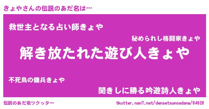 | ヒーロー風カッコイイあだ名 | 『サイバー戦士キョヤ』『天弓騎士キョ』 |
