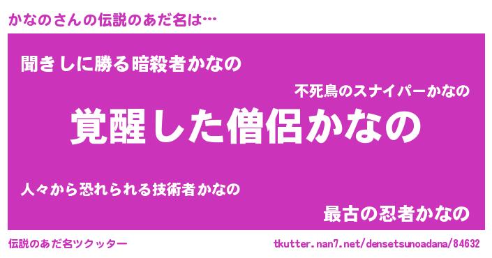| 意味不明あだ名 | 『自称かなの』『とにかく怪しいかなの』 |