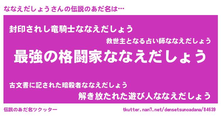 | 意味不明あだ名 | 『住所不定無職ななえだしょう(12歳)』 |