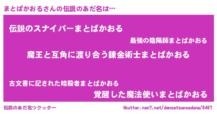 | 意味不明あだ名 | 『自称まとばかおる』 |