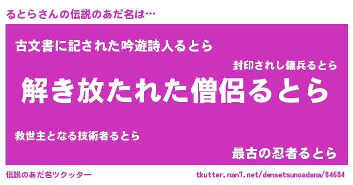 | 男性向けラノベタイトル風あだ名 | 『るとらの嫁は女の子じゃないと思った?』 |