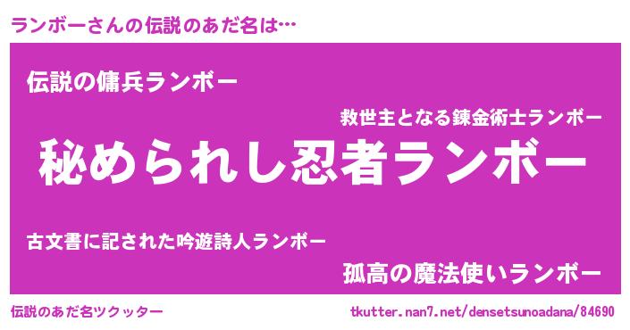 | 男性向けラノベタイトル風あだ名 | 『はたらくランボーさま!』 |