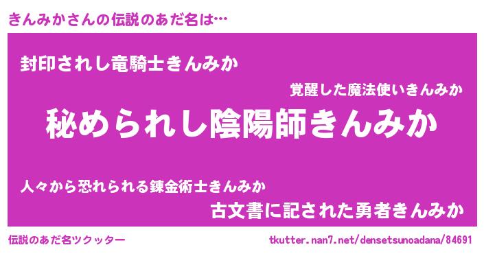 | ヒーロー風カッコイイあだ名 | 『ウルトラきんみかマン』『仮面キンダー』 |