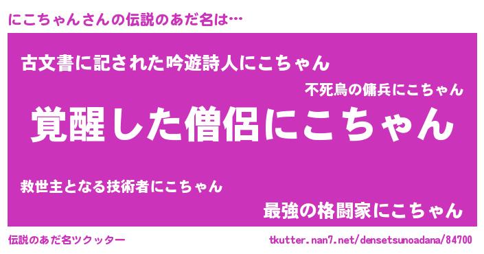 | ヒーロー風カッコイイあだ名 | 『仮面ニコダー』『幻影騎士ニコ』 |