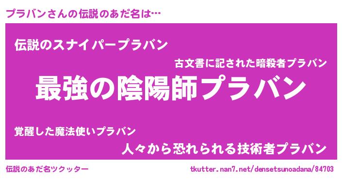 | 意味不明あだ名 | 『住所不定無職プラバン(77歳)』 |