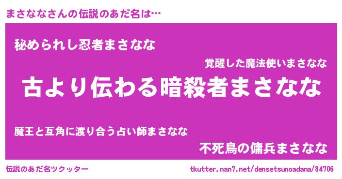 | ヒーロー風カッコイイあだ名 | 『ネオマサナナ』『ウルトラまさななマン』 |