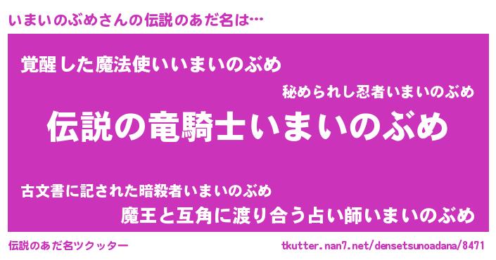 | 意味不明あだ名 | 『自称いまいのぶめ』 |