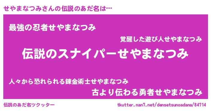 | ヒーロー風カッコイイあだ名 | 『スーパーセヤマナツミ』『天弓騎士セヤ』 |