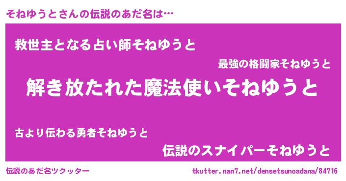 | ヒーロー風カッコイイあだ名 | 『仮面ソネダー』『幻影騎士ソネ』 |