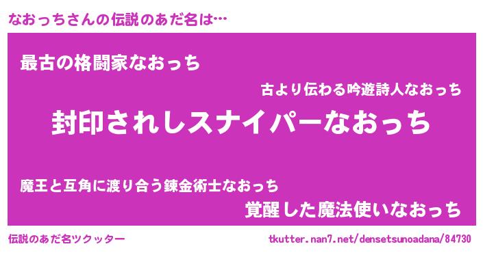 | 男性向けラノベタイトル風あだ名 | 『ナオッチアートオンライン』 |