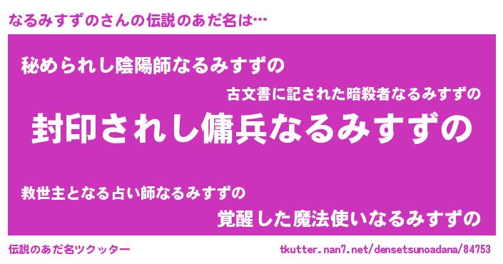 | 男性向けラノベタイトル風あだ名 | 『うちのなるみすずのが世界を掌握している!』 |