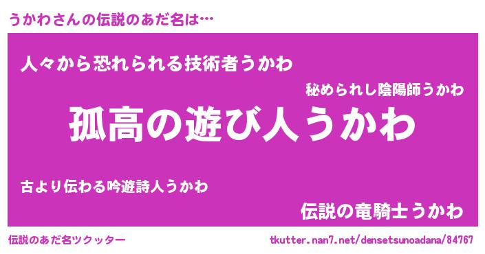 | ヒーロー風カッコイイあだ名 | 『暗黒騎士ウカ』『愛の使者うかわ』 |