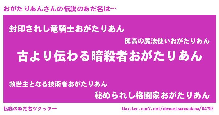 | ヒーロー風カッコイイあだ名 | 『仮面オガダー』『ネオオガタリアン』 |