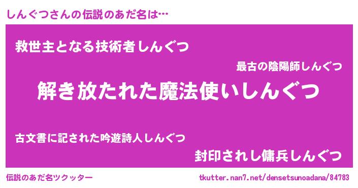 | 意味不明あだ名 | 『とにかく怪しいしんぐつ』 |
