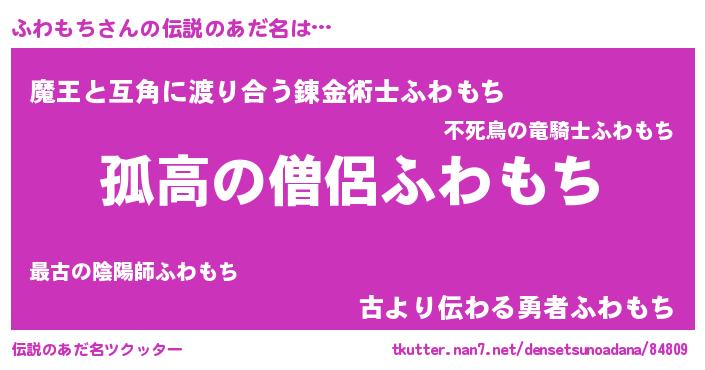 | ヒーロー風カッコイイあだ名 | 『魔戒騎士フワ』『愛の使者ふわもち』 |