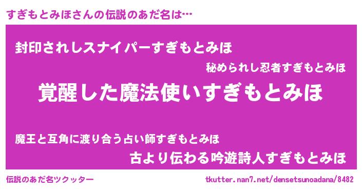 | 男性向けラノベタイトル風あだ名 | 『すぎもとみほの嫁は女の子じゃないと思った?』 |