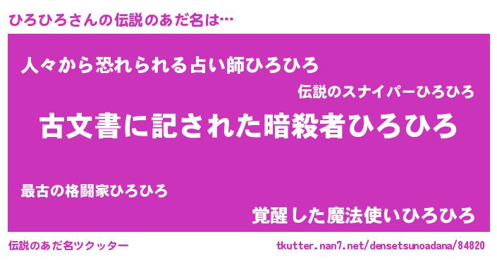 | 胡散臭い通販商品みたいなあだ名 | 『あなたにだけ特別に提供する限定10本のレアな日本酒…その名も「ひろひろ」』 |