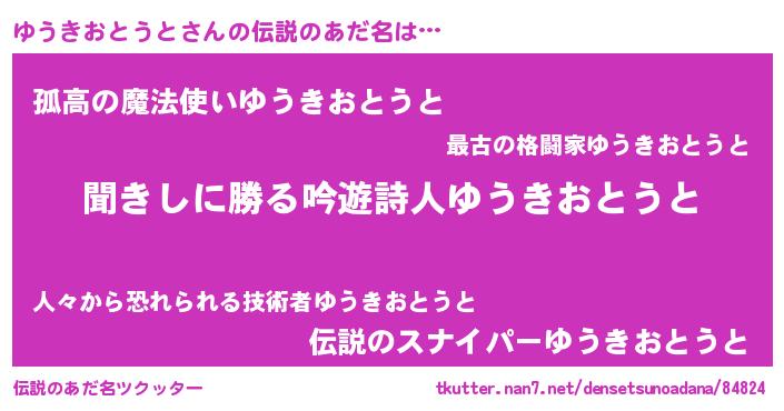 | ヘコむあだ名 | 『ゆうきおとうと(笑)』『ゆうお』 |