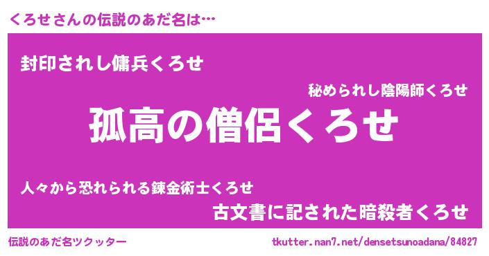 | 意味不明あだ名 | 『とにかく怪しいくろせ』『自称くろせ』 |