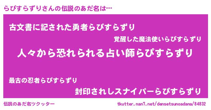 | ヒーロー風カッコイイあだ名 | 『正義の使者らぴすらずり』 |