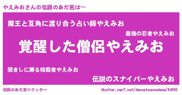 | 意味不明あだ名 | 『住所不定無職やえみお(53歳)』 |