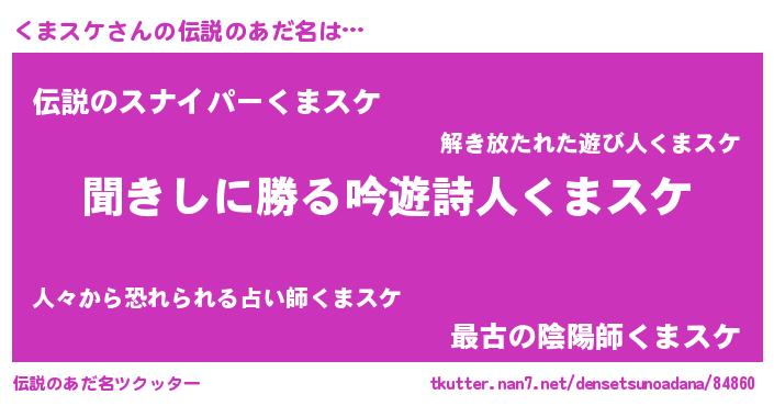 | 意味不明あだ名 | 『自称くまスケ』『なめこ科くまスケ属』 |