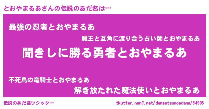 | 意味不明あだ名 | 『永久保存とおやまるあ』 |