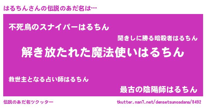 | ポケモン風あだ名 | 『ヒハルチン』『ハルゴンZ』 |