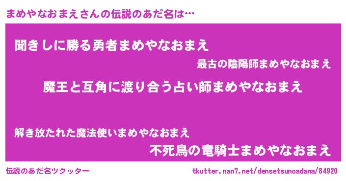 | 意味不明あだ名 | 『自称まめやなおまえ』 |