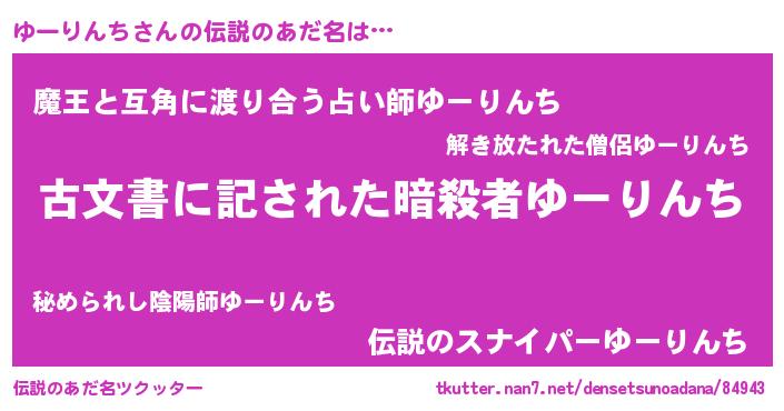 | 意味不明あだ名 | 『永久保存ゆーりんち』 |