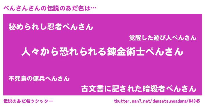 | ヒーロー風カッコイイあだ名 | 『正義の使者ぺんさん』『仮面ペンダー』 |