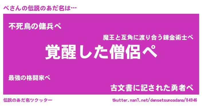 | ヒーロー風カッコイイあだ名 | 『天弓騎士ペ』『スーパーペ』 |