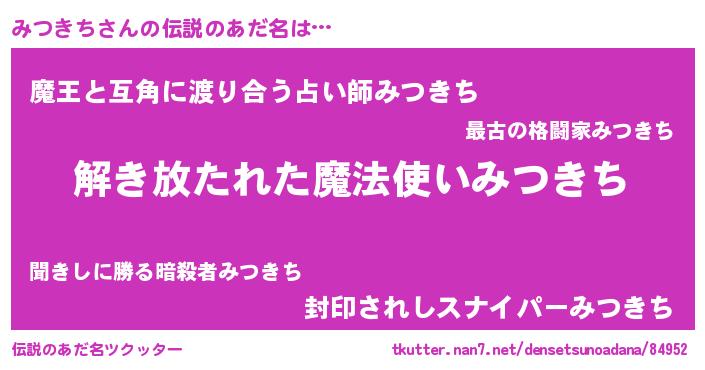 | 男性向けラノベタイトル風あだ名 | 『みつきちの嫁は女の子じゃないと思った?』 |
