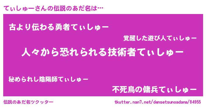 | ヒーロー風カッコイイあだ名 | 『正義の使者てぃしゅー』『仮面ティダー』 |