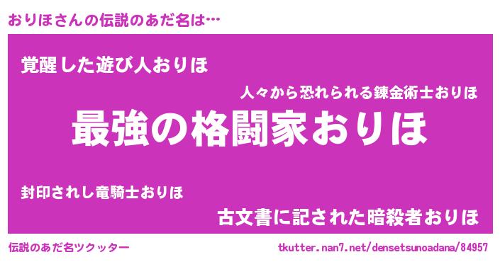 | ヒーロー風カッコイイあだ名 | 『仮面オリダー』『ウルトラおりほマン』 |