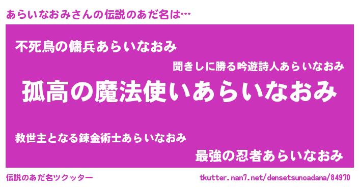 | 男性向けラノベタイトル風あだ名 | 『ダンジョンにあらいなおみを求めるのは間違っているだろうか』 |