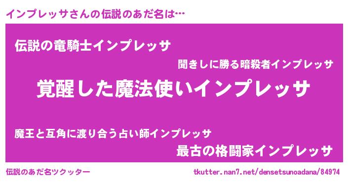 | 胡散臭い通販商品みたいなあだ名 | 『全米が絶賛したサプリメント…その名も「インプレッサ」』 |