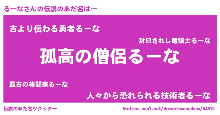 | ヘコむあだ名 | 『るーっ子』『るーな(震え声)』 |