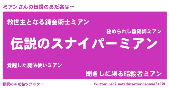| ヒーロー風カッコイイあだ名 | 『仮面ミアダー』『スーパーミアン』 |