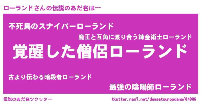| 男性向けラノベタイトル風あだ名 | 『ローランド~年齢イコール彼女いない歴の魔法使い~』 |