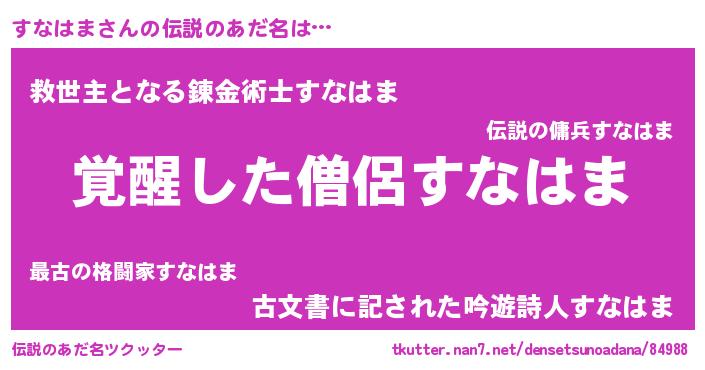 | ヒーロー風カッコイイあだ名 | 『究極戦士スナハマ』『炎刃騎士スナ』 |