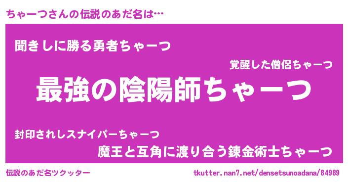 | 意味不明あだ名 | 『ちゃーつフォーエバー』『自称ちゃーつ』 |